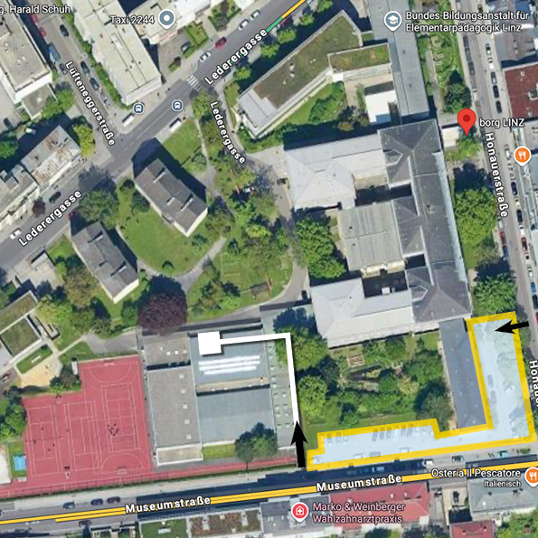 Öffentlich erreichbar: Praktisch mit jedem öffentlichen Verkehrsmittel, das zum Hauptbahnhof Linz fährt, da die Stelzhamerschule in nur etwa 5 Minuten Fußweg liegt.